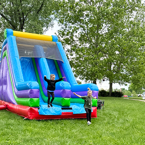 The Dog Tag Bounce & Bolt is back! After 125 Runners Bounced & Bolted their way through over 300 ft of inflatable obstacles and through the 1.5–3 mile course, they finished with a grand 18′ slide down into the Veterans Memorial Park! And this year, the fun is even larger with more inflated obstacles.