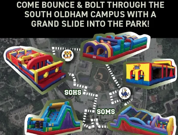 The race starting location is at the Veterans Memorial Park (Crestwood, KY) in front of South Oldham High School. Runners can choose a 1.5 mile or 3 mile course, and runners are released in 10 minute heats to keep the course clear for plenty of room across the obstacles. The course is mostly over grass, and includes some paved asphalt, touring over the entire South Oldham Schools campus—around South Oldham High, South Oldham Middle, Camden Station and Kenwood Station. Each runner receives an event shirt, and has the opportunity to take home personalized dog tags! The 2026 Dog Tag Bounce & Bolt will benefit our local American Legion Post 39.
